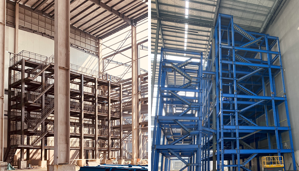 該項目為多通道粉料自動輸送系統(tǒng),是公司EPC項目施工現(xiàn)場,由鋼構(gòu)平臺-緩存?zhèn)}-批混-整形-振動篩包裝輸送產(chǎn)線部分和控制部分組成。